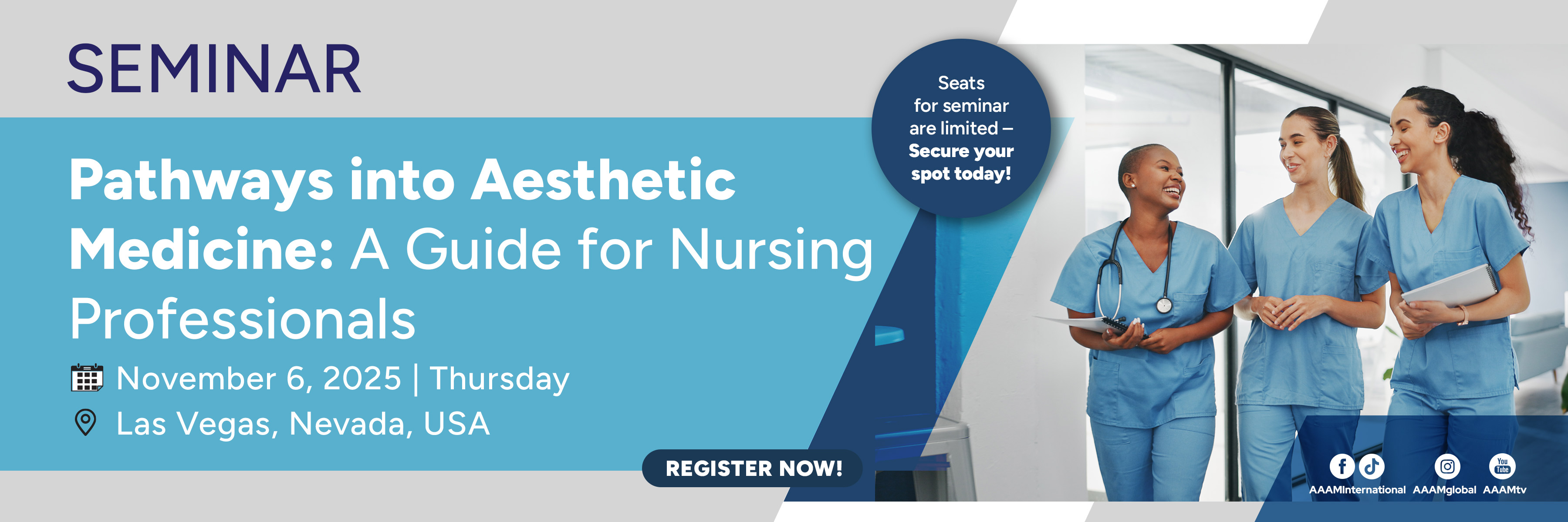 November 6 - November 6, 2025Las Vegas, NevadaPPathways into Aesthetic Medicine: A Guide for Nursing Professionals (Seminar) + 21st AAAM Congress