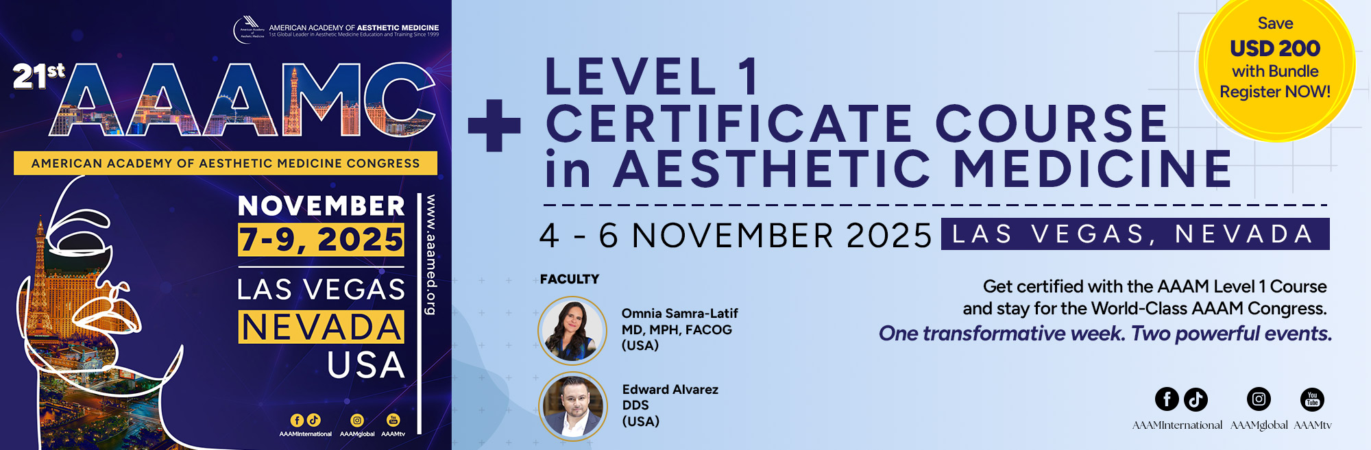 November 4 - November 6, 2025Las Vegas, NevadaL1Level 1 Certificate Course + 21st AAAM Congress